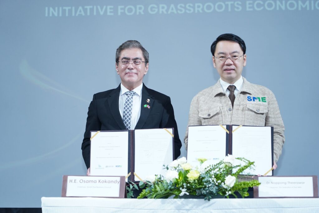 สภาธุรกิจซาอุดีอาระเบีย–ไทย จับมือ สมาพันธ์เอสเอ็มอีไทย ลงนาม MOU เชิงยุทธศาสตร์ เสริมความร่วมมือการค้า–การลงทุนเปิดประตู SME ไทยสู่ตลาดซาอุดีอาระเบีย ผ่าน “คลัสเตอร์ SIE (ธุรกิจชุมชนร่วม)” รับโอกาส Vision 2030