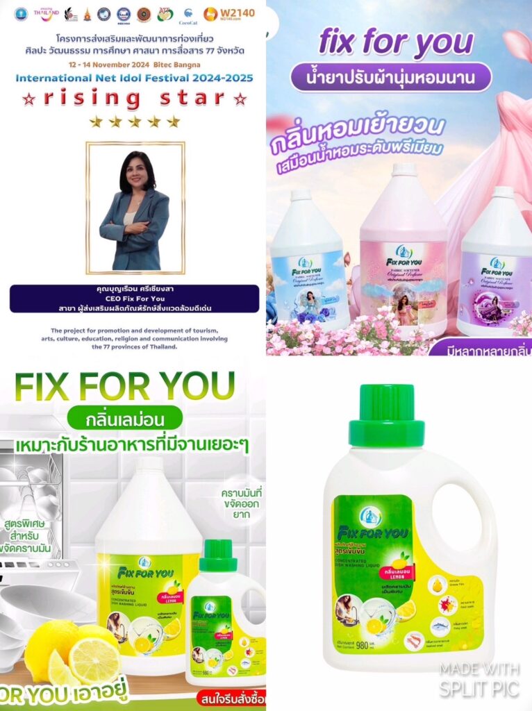 คุณบุญเรือน ศรีเชียงสา CEO ผลิตภัณฑ์ Fix For You ทำความสะอาดครัวที่ไม่ทำลายสิ่งแวดล้อม เป็นทางเลือกที่ดีสำหรับการดูแลรักษาครัวเรือนโดยไม่ก่อให้เกิดมลพิษและลดผลกระทบต่อสิ่งแวดล้อม น้ำยาประเภทนี้มักจะมีส่วนผสมที่เป็นมิตรกับธรรมชาติและย่อยสลายได้ง่าย ซึ่งเป็นประโยชน์ทั้งต่อสุขภาพและสิ่งแวดล้อม