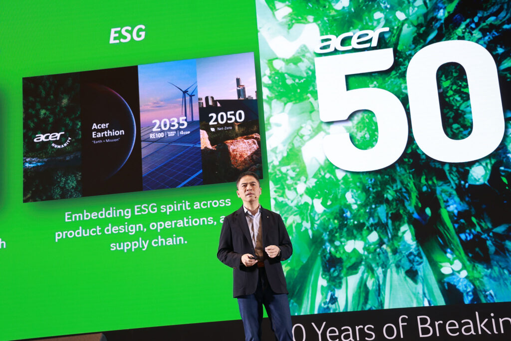 อีกด้านหนึ่ง เอเซอร์ยังดำเนินธุรกิจภายใต้แนวคิด ESG (Environmental, Social and Governance) โดยผสานหลักความยั่งยืนเข้ากับทุกกระบวนการสำคัญ ตั้งแต่การออกแบบผลิตภัณฑ์ การดำเนินงาน ไปจนถึงการบริหารจัดการซัพพลายเชน พร้อมเดินหน้าพัฒนาผลิตภัณฑ์ที่ใช้วัสดุหมุนเวียน เพื่อให้การเติบโตของเทคโนโลยีดำเนินควบคู่ไปกับความรับผิดชอบต่อสังคมและสิ่งแวดล้อม