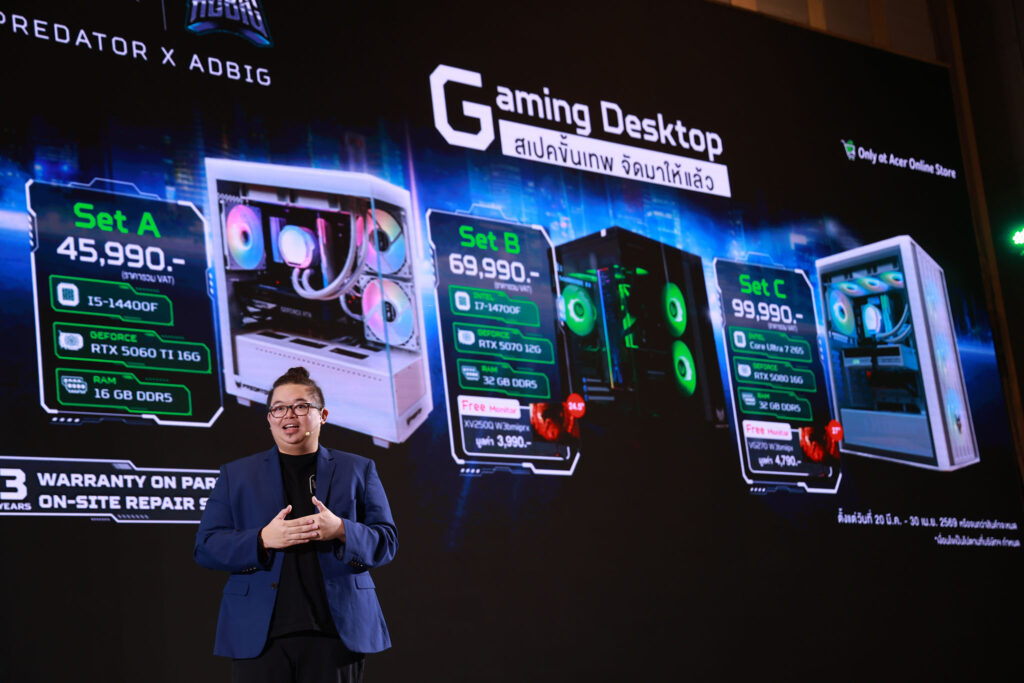 อีกหนึ่งไฮไลต์สำคัญของปีนี้ คือ โปรเจกต์ Predator x ADBIG ที่เอเซอร์ร่วมมือกับ ADBIG ผู้เชี่ยวชาญด้านคอมพิวเตอร์ประกอบ (Custom PC) เพื่อพัฒนา Custom DIY PC ภายใต้แบรนด์ Predator ที่คัดสรรและออกแบบสเปกของแต่ละรุ่นอย่างพิถีพิถัน เพื่อให้ได้สมดุลด้านประสิทธิภาพที่เหมาะสมกับผู้ใช้งานในทุกระดับ ตั้งแต่ผู้เริ่มต้นไปจนถึงผู้ที่ต้องการพลังประมวลผลระดับสูง พร้อมวางจำหน่าย เฉพาะผ่าน Acer Online Store เท่านั้น เพื่อสร้างประสบการณ์ใหม่ให้กับคอมมูนิตี้เกมเมอร์และผู้ใช้งานสาย DIY พร้อมขยายการเชื่อมต่อแบรนด์กับผู้บริโภครุ่นใหม่มากยิ่งขึ้น