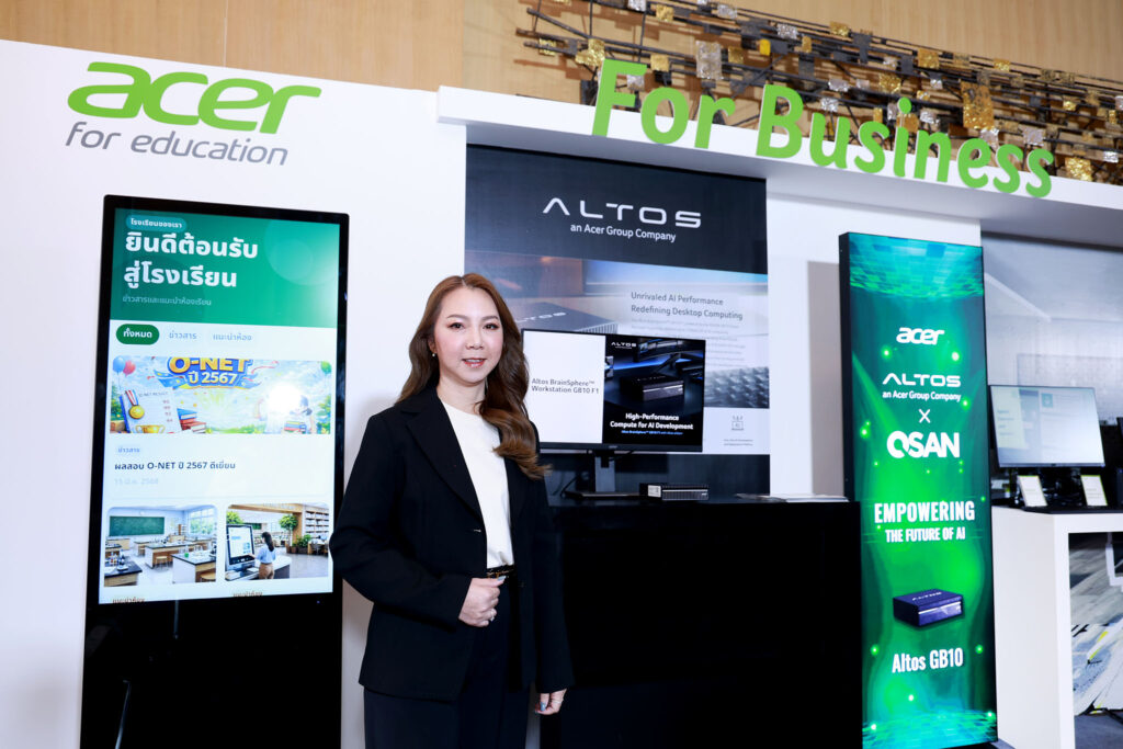 - Breaking the Performance Barrier: เอเซอร์ยกระดับศักยภาพการประมวลผลขององค์กรด้วย Altos BrainSphere™ GB10 F1 ภายใต้แนวคิด “A Grace Blackwell AI Supercomputer on Your Desk” นำพลังประมวลผล AI ระดับสูงมาไว้ในเครื่องขนาดกะทัดรัด ช่วยให้องค์กรสามารถพัฒนา Local AI Model วิเคราะห์ข้อมูล และจัดการงาน AI ที่ซับซ้อนได้อย่างมีประสิทธิภาพ